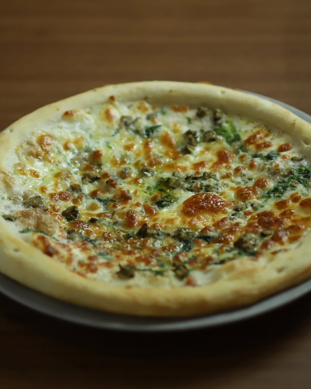 🧀 ふんわりモチモチ生地のピザ生地に🫓、 釜揚げしらす🦐と香り豊…